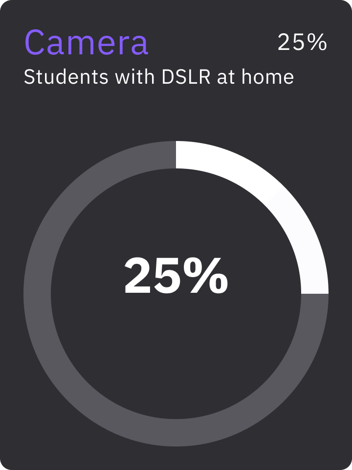 • Not enough cameras available for students during class or for use off campus