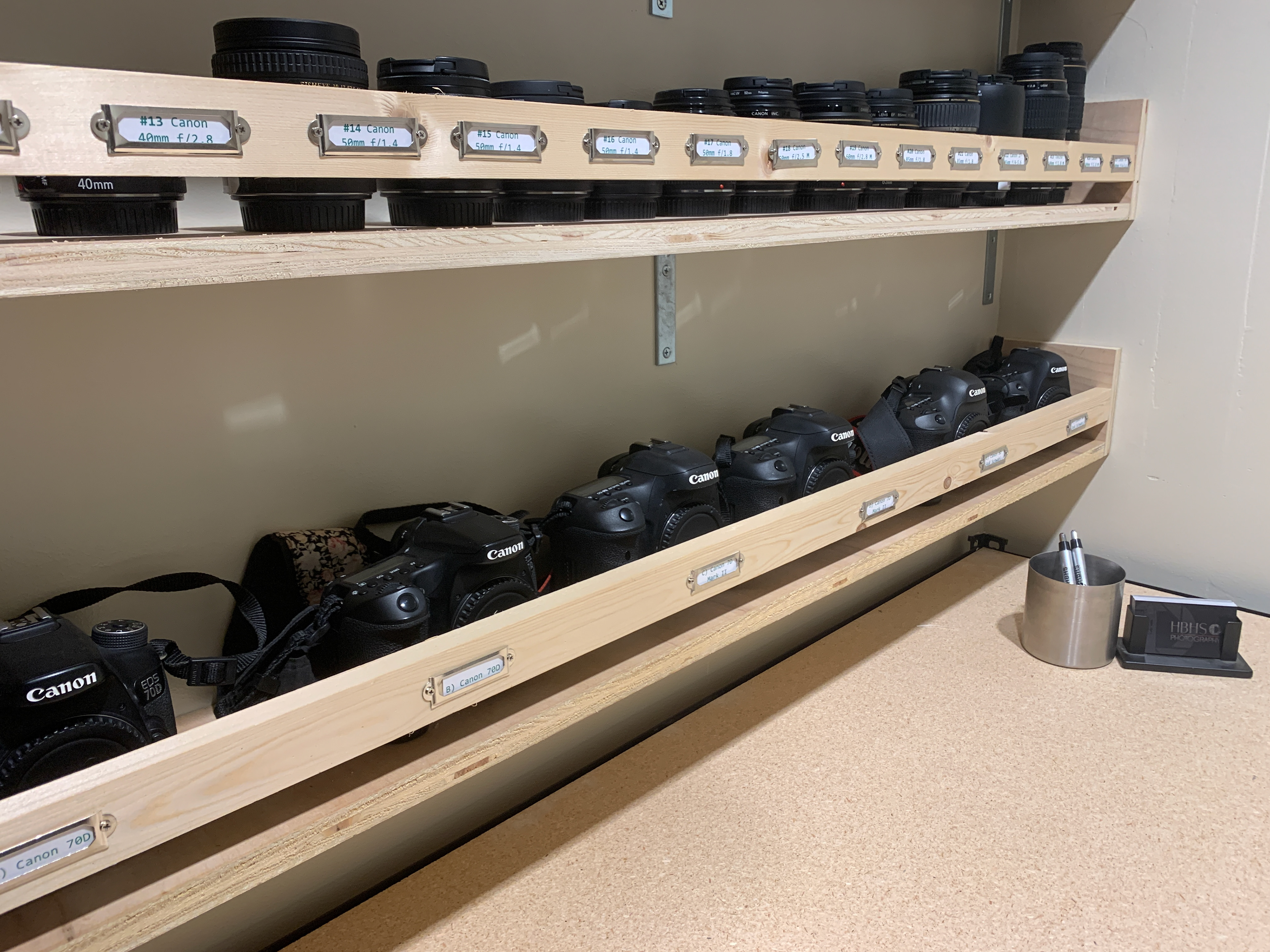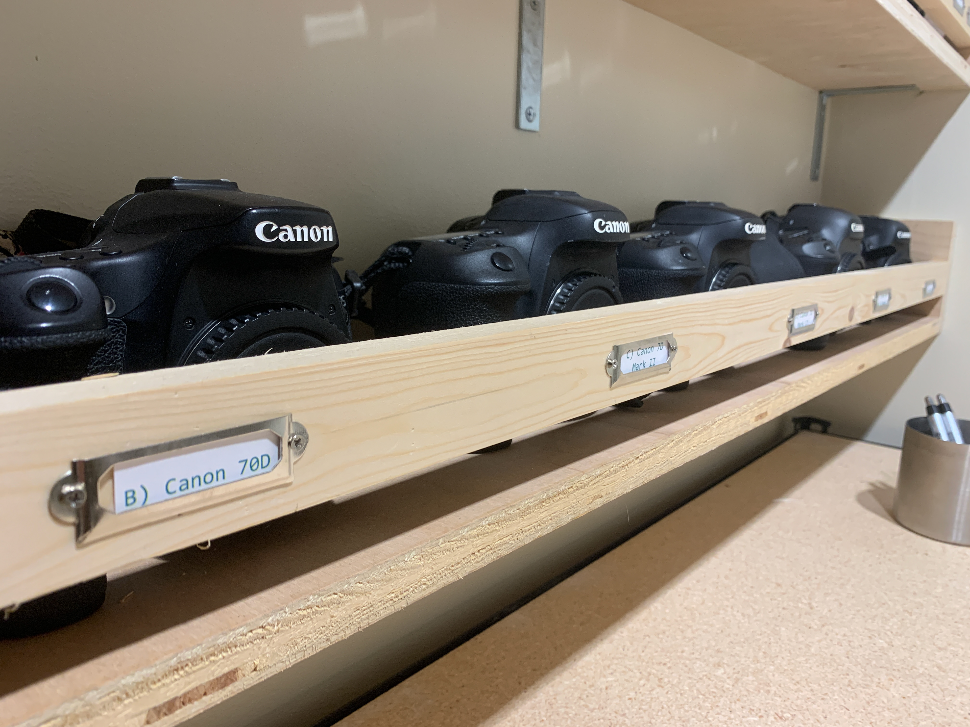 • Camera bags are labeled and a new cabinet system was setup at the entrance of the room